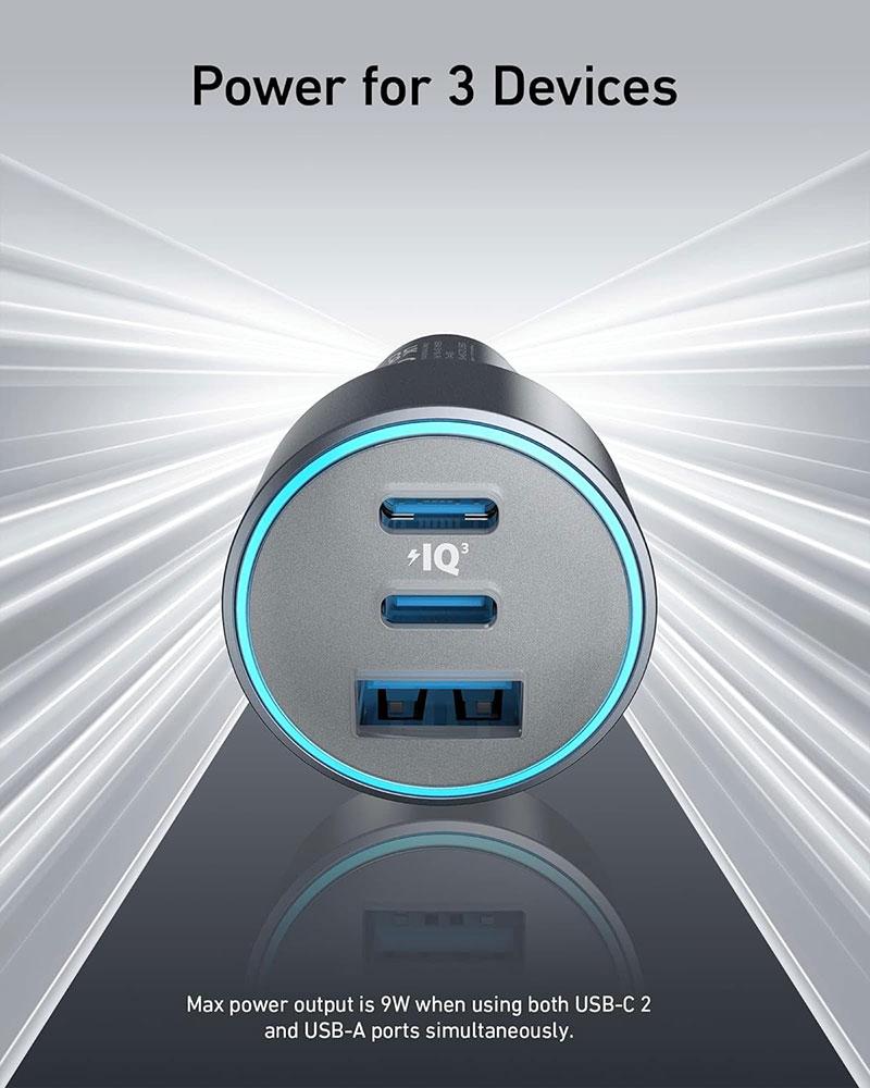انكر - شاحن سيارة موديل (535) بقوة 67 واط بمنفذين تايب سي و منفذ يو اس بي